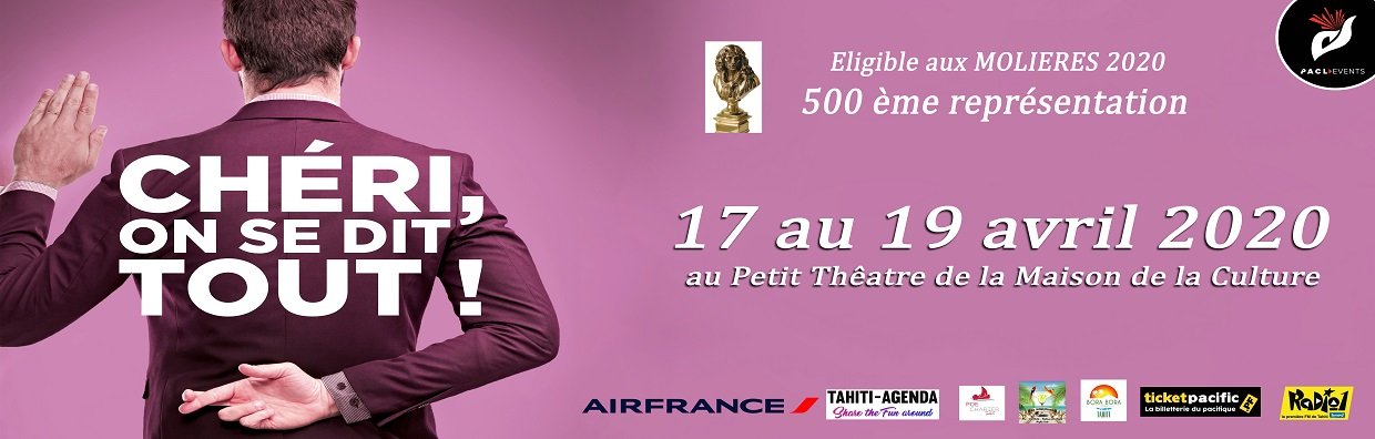 PACL EVENTS Rideau Rouge Tahiti présente « CHERI ON SE DIT TOUT », du vendredi 17 avril à 19h30 au dimanche 19 avril à 17h00 au Petit théâtre de la Maison de la culture de Papeete