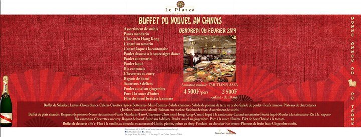 Venez célébrez le Jour de l’An Chinois, au Plazza, le vendredi 08 février, à l’honneur cette année, le Cochon de Terre lors d’un Buffet Impérial :