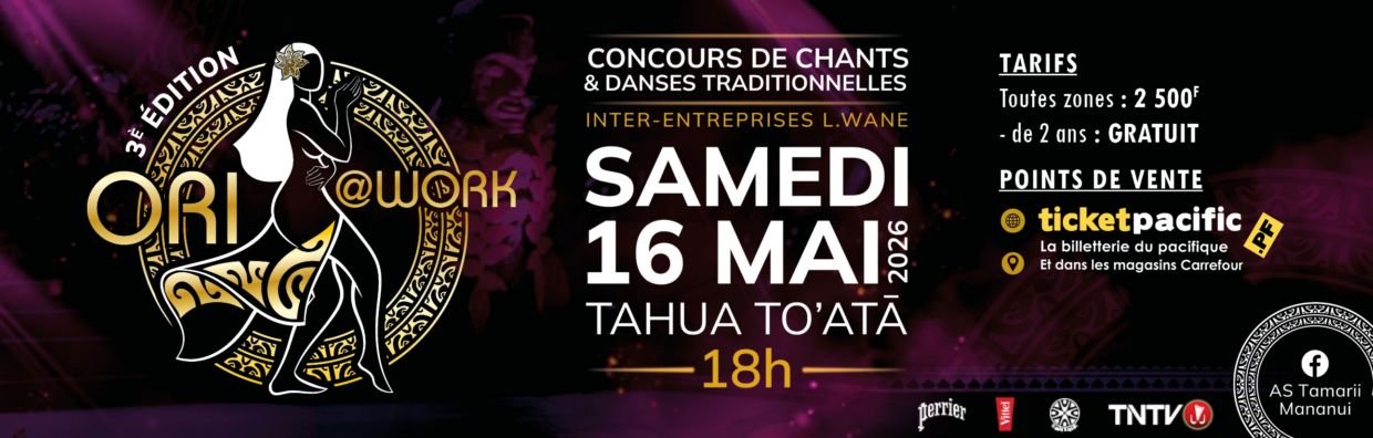 Concours de chant et danse traditionnelle inter-entreprise des sociétés L.WANE. Tarif unique de 2500 Fcfp en fosse ou tribunes. Gratuit pour les moins de 2 ans. Billets sur ticketpacific.pf et magasins Carrefour