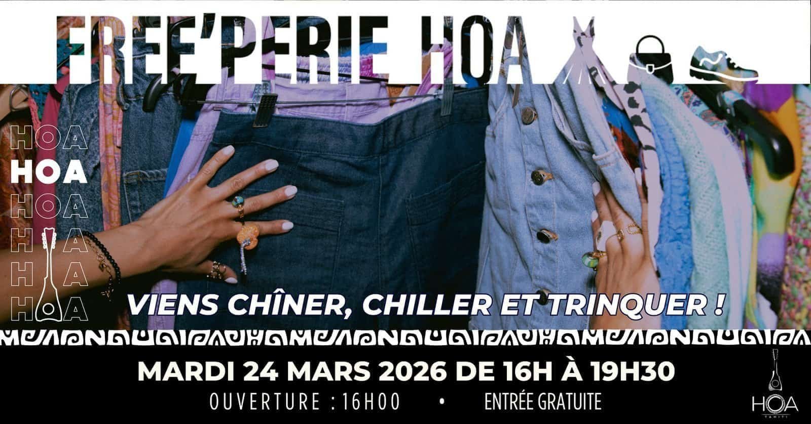 5eme edition de la Free perie : Apero Friperie de la Brasserie Hoa le mardi 24 mars de 16h a 20h30. Vendre ou acheter des fringues de seconde main autour d une biere artisanale. Stand vendeur a reserver. Maximum 2 vendeurs par stand.
