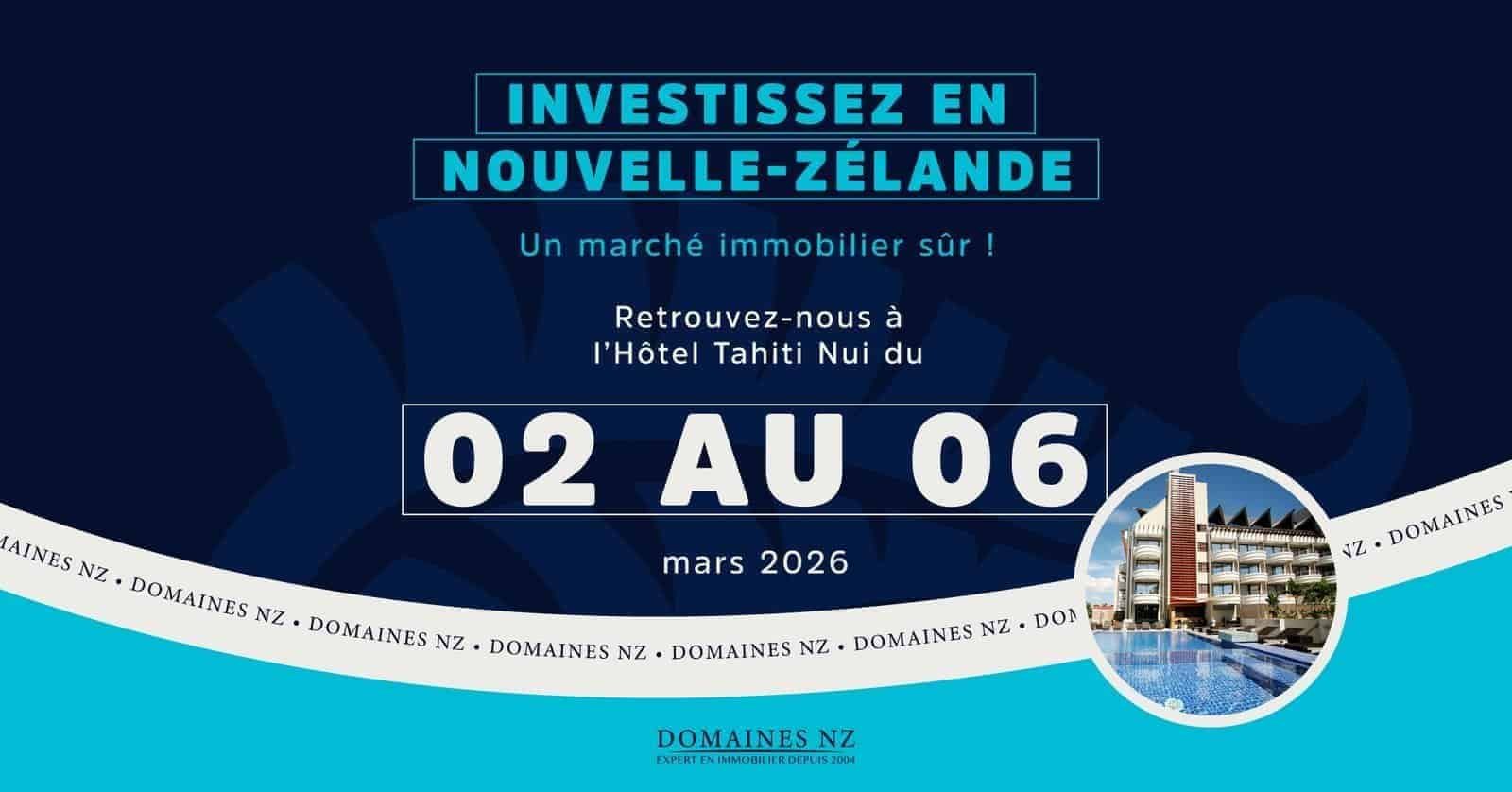 Alexandre et Jerome de Domaines NZ agence immobiliere francophone d Auckland seront a Tahiti. Rendez-vous personnalises d 1h pour votre projet immobilier en Nouvelle-Zelande. Conseils sur-mesure etudes de dossiers gratuites. Taux de change XPF/NZD avantageux. Reservation sur calendly.com/domaines-nz/mon-rdv-tahiti-mars26