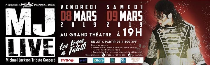 Le MJ Live – Michael Jackson Tribute Concert 😎🎸, s’invite à Tahiti pour deux soirées exceptionnelles le 8 et 9 mars, à partir de 19h, au grand théâtre de la Maison de la culture.