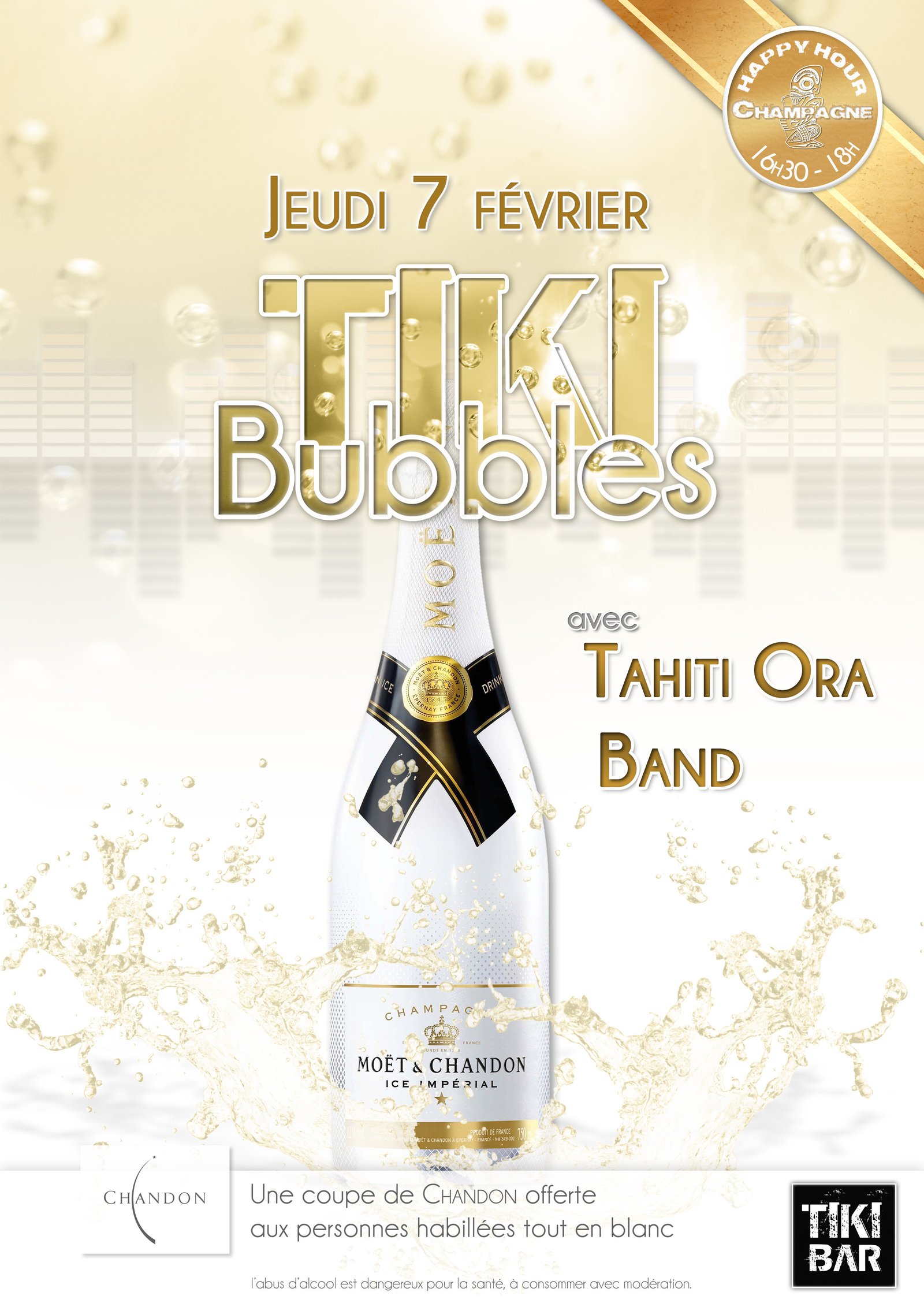 > Une coupe de champagne sera offerte aux personnes vêtues de blanc (sous réserve de consommation)Soirée en partenariat avec le champagne Moët & Chandon.