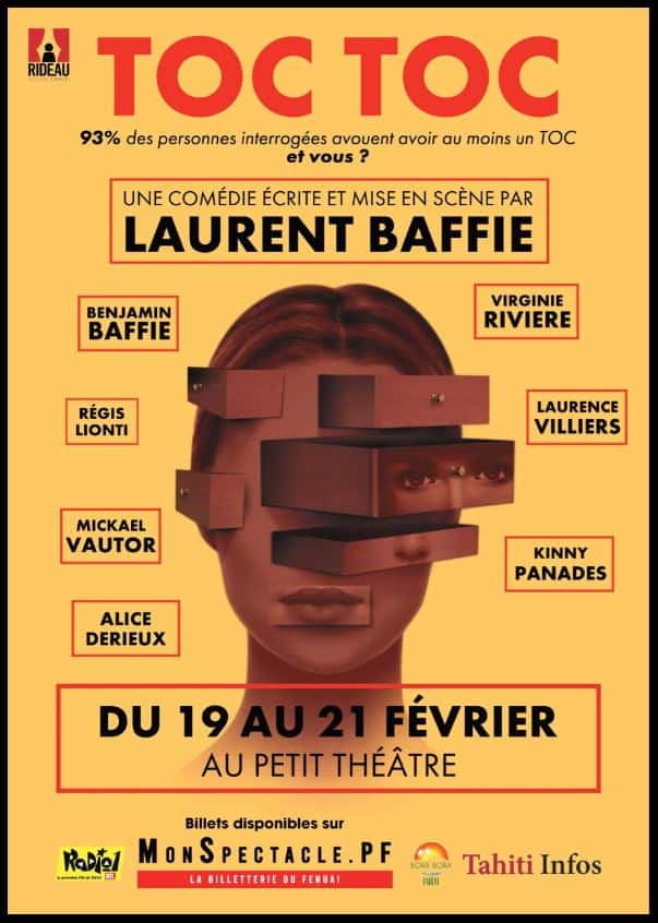 Dernière représentation de la session de février pour Toc Toc. Tarifs 4200-4900 XPF. Infos : https://www.monspectacle.pf/